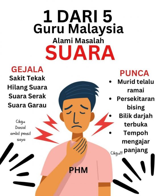 脸书公共卫生资讯专页(PHM)发文指在马来西亚作为一名教师,需要每个星期一至五在课堂上,大声说话多个小时。