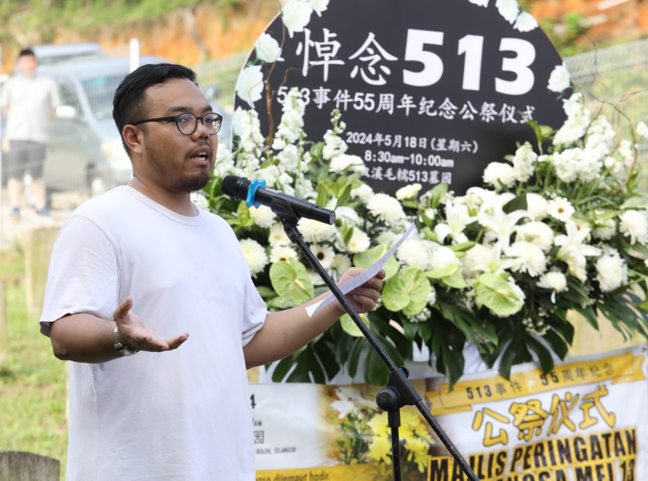 他说,政府应该用专业及开放的态度处理513事件,让一切透明化和还原事实的真相,不该再用一种自我保护的态度去限制外界讨论影响我国深远的历史事件。