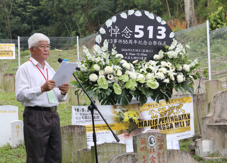 他说,今年的祭拜主题为“把记忆留住”,希望时间能治愈心灵深处的伤痛,彼此间能进一步互相谅解,同时也呼吁当局能在适当的时机解密档案记录以还原513当年的历史真相。