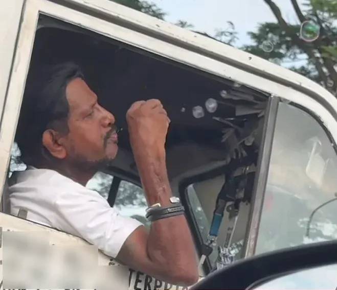(吉隆坡19日讯)自古人生何其乐,偷得浮生半日闲!一名罗里司机在车龙中塞得发闷,按下车窗望向外出,原以为要抽一口闷烟,孰料却是吹起玩具泡泡水,怡然自得的举动引起全网赞叹!