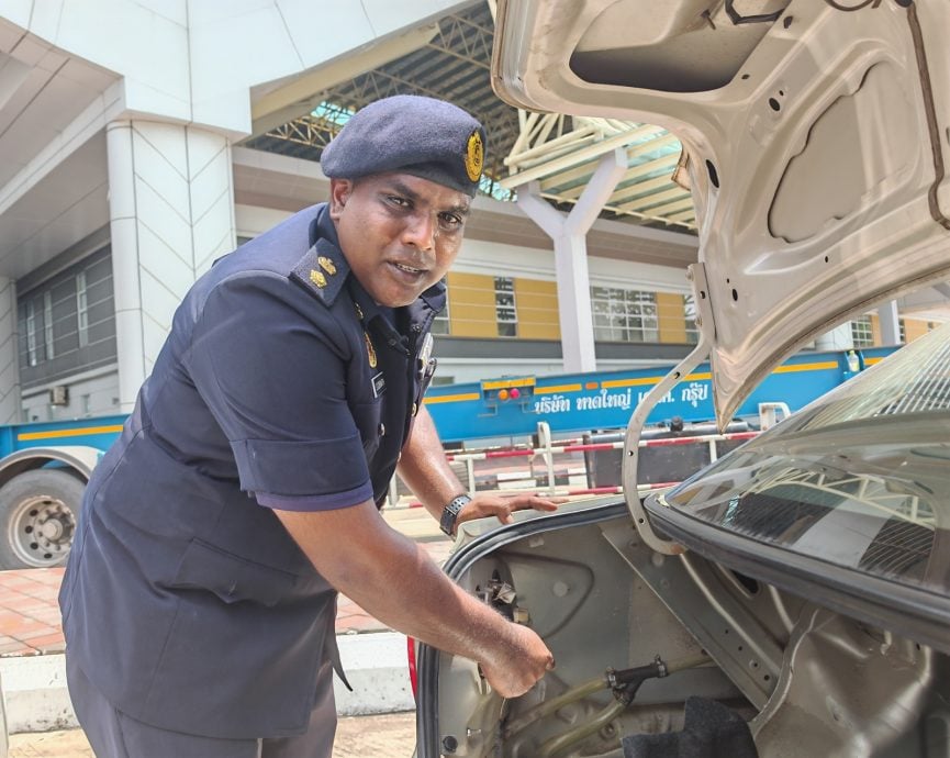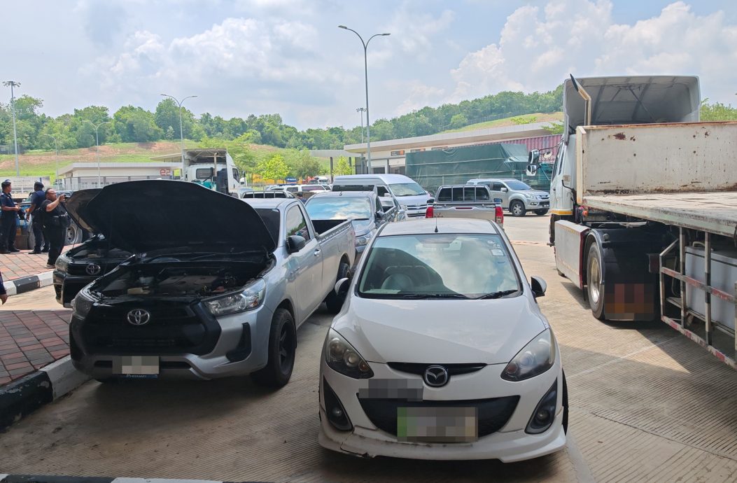 艾迪法立今日到马泰黑木山移民、关 税、检疫及安全(ICQS)大厦对入境的泰国注册车辆展开“油箱行动”(Ops Tangki)后,在新闻发布会上发言。