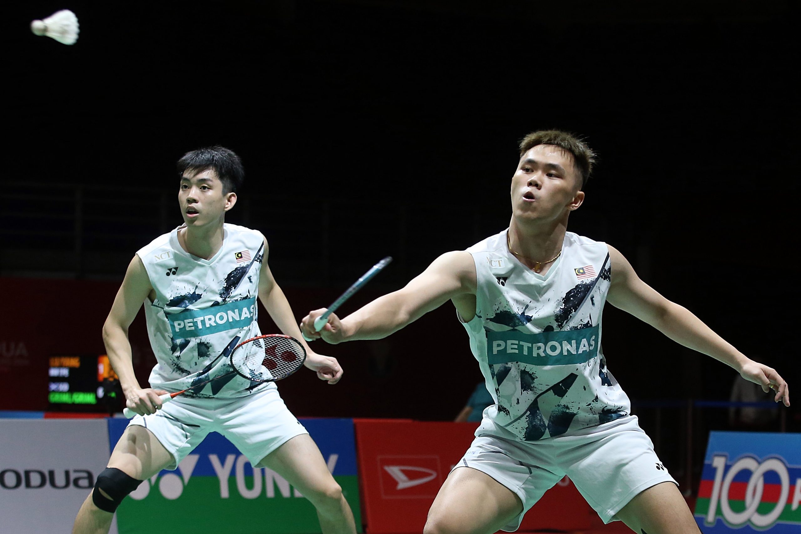 大马组合谢炜杰与刘珣,在较早时以17比21、18比21败给韩国的金荣奕与王灿,缘悭正赛。