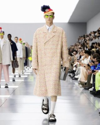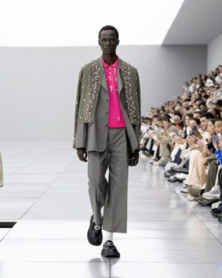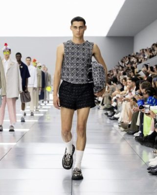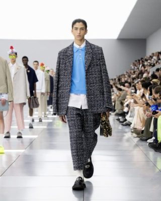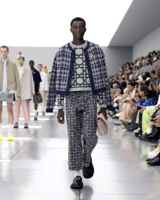 融合前人的传奇与Kim Jones自身的经历,创造他在Dior的5周年系列及Dior Homme 2024春夏男装时装展。系列设计一如既往以品牌的核心为出发点,运用最高级的布料、巧妙的线条设计、独特的外形、和超凡工艺为此系列赢得业界赞美和认同的口碑。灵感源于女士服装承传的时装文化,应用于男装系列,并首次结集众多设计团体想致敬的 Dior前人和朝代的成果。从Yves Saint Laurent时代的款式到Gianfranco Ferré的刺绣,以至Dior先生的圆形宝石到Marc Bohan的质感,结合前人成果与流行经典元素,塑造“hommes fleurs”(男士花朵),同时呈现传统和叛逆:从柔美到阳刚、沙龙到街头、New Look到新浪潮,特别是Cannage藤格纹图案,它们以质感、精湛工艺与Dior的流行经典元素贯穿,成为更现代化的结晶。