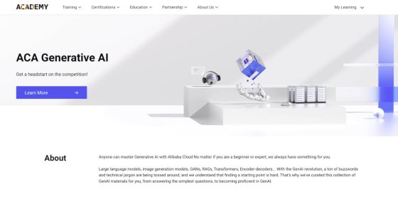 生成式AI ACA课程由阿里云的培训及认证机构阿里云学院开发,主要教授AI基础知识,包括最基本的机器学习、自然语言处理、编码器-译码器,以至生成对抗网络及通过检索增强生成、代理等方式使用模型。