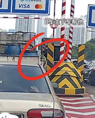 (八打灵再也25日讯)第二位车主帮第一辆车过收费站,第三位车主再帮第二辆车,让人忍不住高呼:太有爱了!