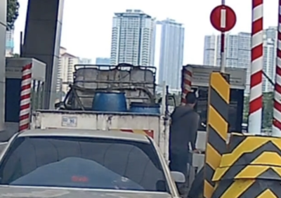 车龙好不容易往前行驶,未料刚刚帮人的车主就又被卡住,没办法过收费站。后方罗里司机见状也效仿其做法,下车帮忙付款。