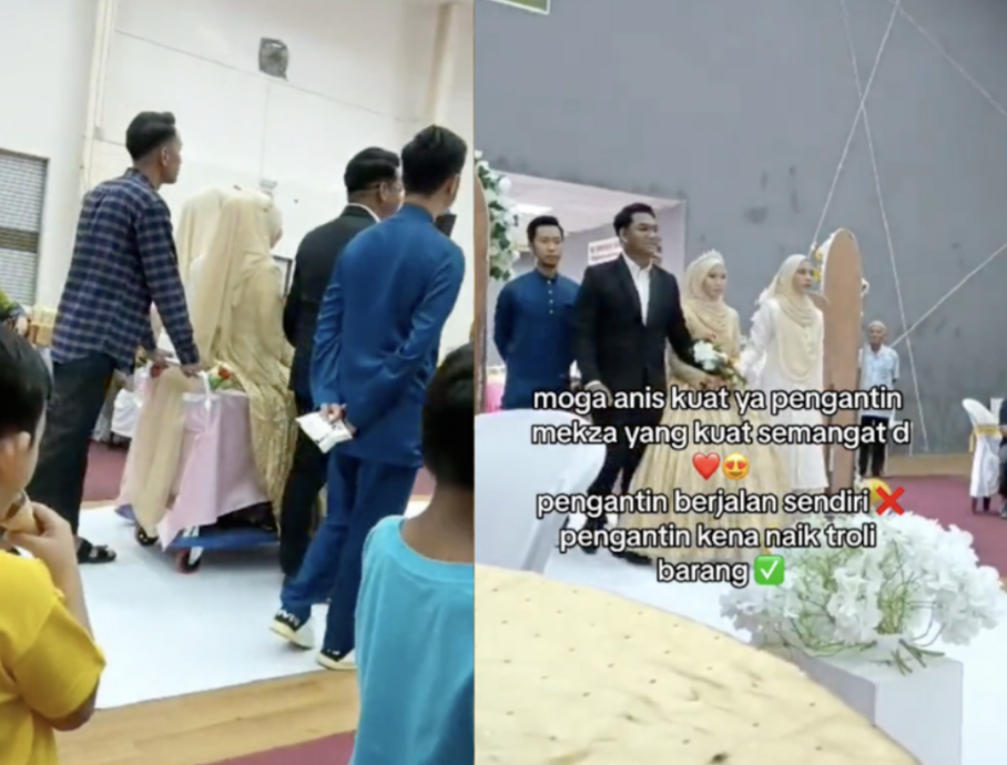 该视频引起关注,一名相信是这对新人的亲友留言透露,新娘因一场车祸导致腿部受伤、疼痛难耐,才会利用手推车进行婚礼入场仪式。