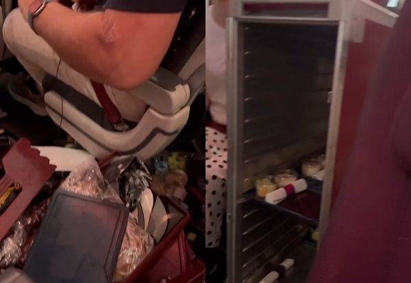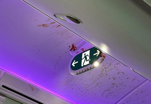 女网友附上飞机上的录影及照片。影片显示,空服员从走道被甩飞到乘客身上,头部因撞击而受伤,一旁的女乘客也关心地帮忙查看伤势,而飞机上的走道一片凌乱,走道顶部则有大量的食物酱料,让人看得触目惊心。