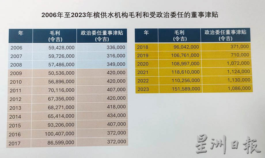 他也说,水供机构在2008年的毛利(Gross Profit)是5748万6000令吉,到了2023年涨至1亿5158万9000令吉,但该机构却指没钱赚、不够钱。