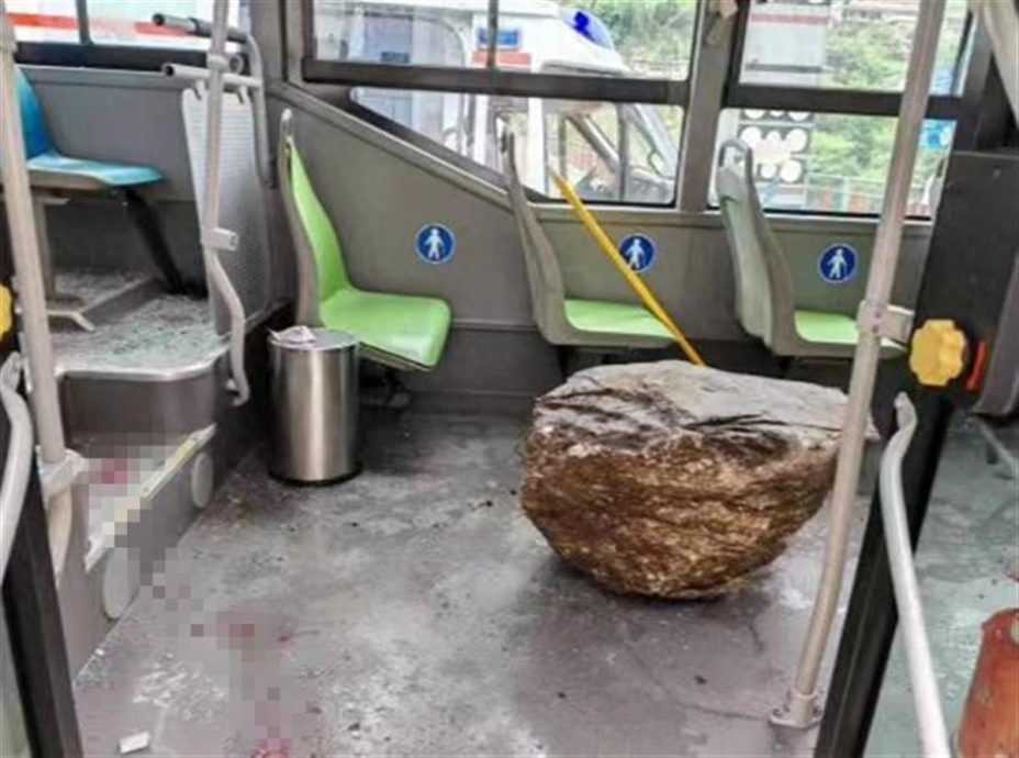(云南30日讯)天降横祸!中国云南一辆巴士在行驶途中,突被落石砸穿,导致一名女乘客身亡。