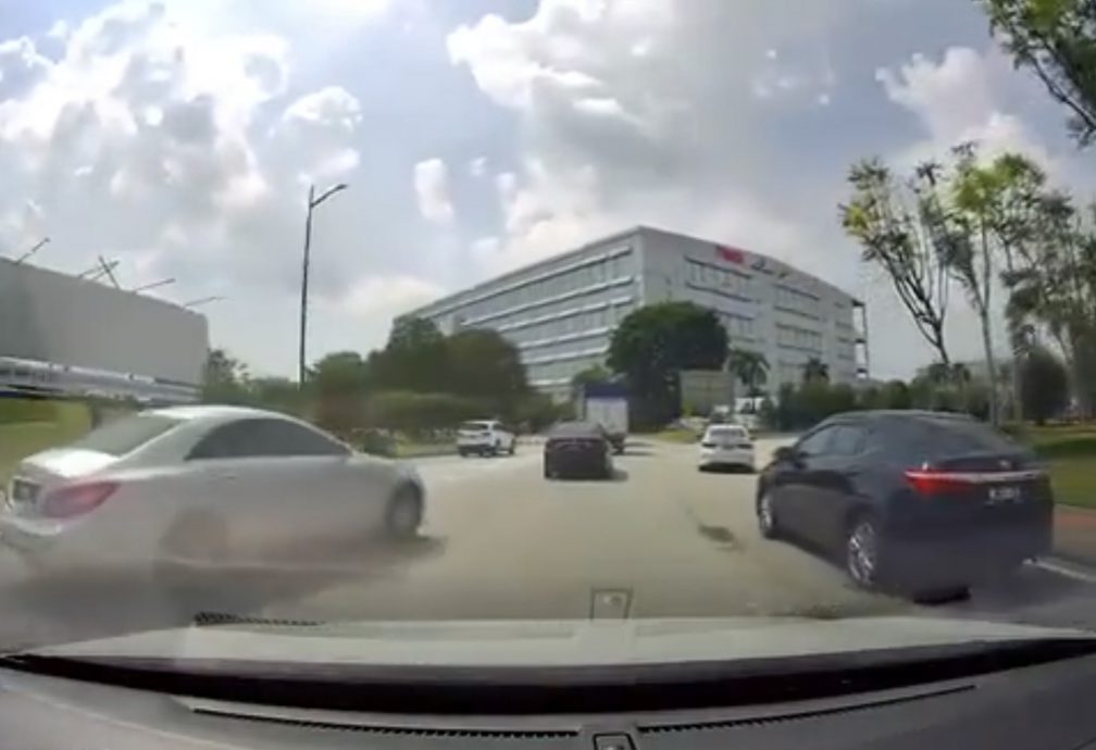(八打灵再也31日讯)恶人先告状?一名马赛地司机疑似不满一辆轿车不让路而心生不忿,并摇下车窗向对方怒比“国际手势”。