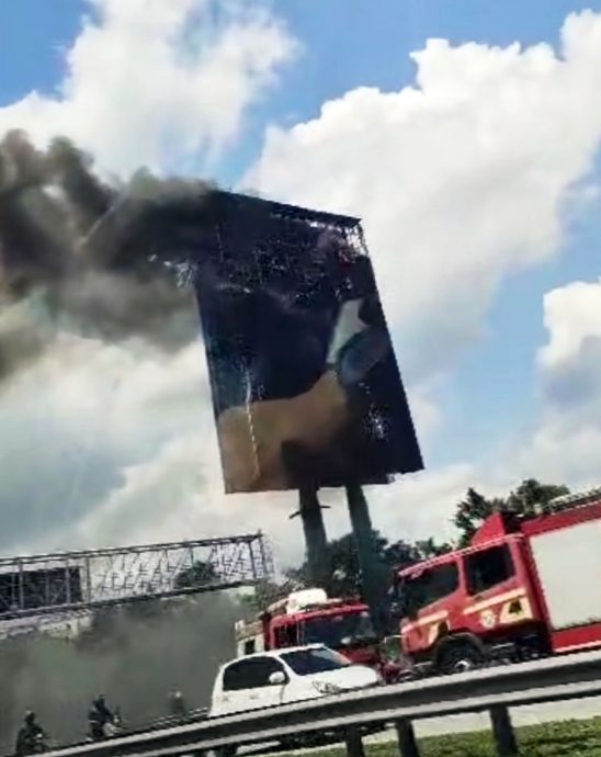 (八打灵再也31日讯)联邦大道靠近灵市加星路的一个大型电子广告牌今午发生大火,9名在场进行维修工作的外劳全部被大火灼伤,其中3人伤势严重必须留医接受治疗,余者获准出院。
