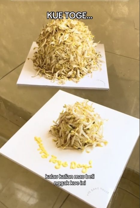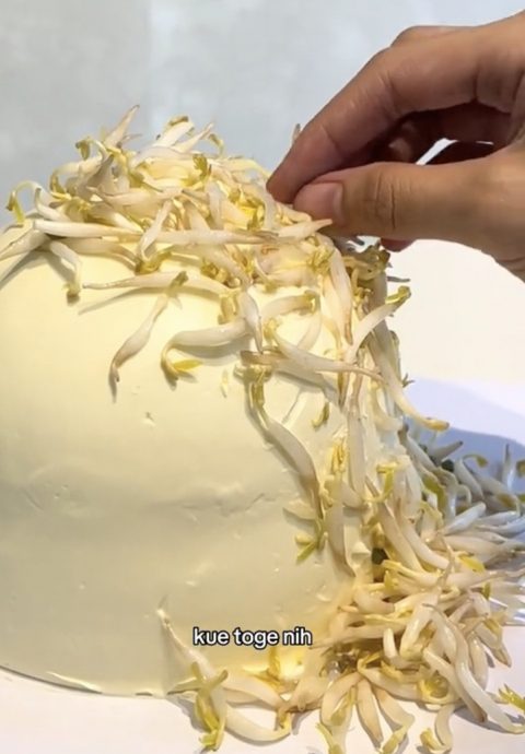 社交媒体流传一段视频,来自印尼的女烘焙师近日接到奇葩订单,一名顾客指定要订制一款有豆芽的蛋糕,并要求在蛋糕的表层洒满生豆芽,让她怀疑是否恶作剧。