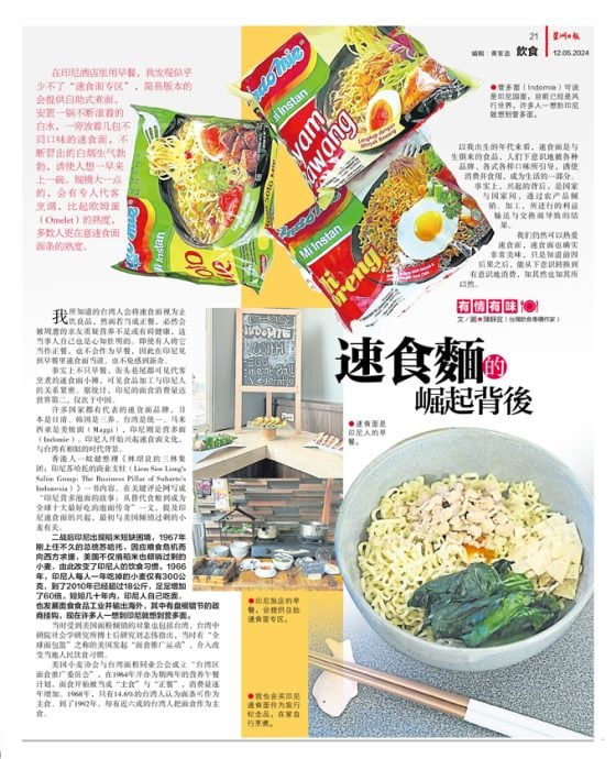 拜读《星洲日报》副刊(编按:刊登于2024年5月12日《快乐星期天》)陈静宜老师的〈速食面的崛起背后〉后,才发觉过去几十年来,泡面在许多国家竟埋藏着如此丰厚且复杂的来龙去脉,并能变成一种深厚饮食文化的底蕴,还真的令人拍案叫绝,原来自己也很后知后觉。