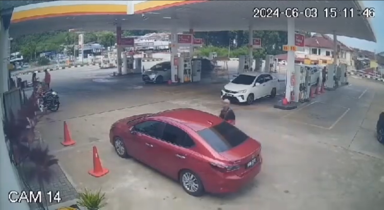 关丹警区主任旺莫哈末查哈里发表文告指出,此事发生是在5月4日下午3时10分,在士慕满一家蚬壳油站发生。