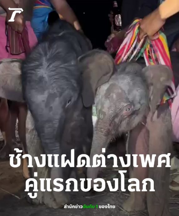 泰国大象诞下 世上首对龙凤胎