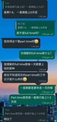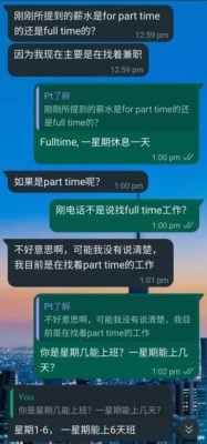 这名求职者随后表示自己只在找兼职的工作,但一周仍能工作6天,让公司职员大感狐疑“这不就是全职工作吗?”