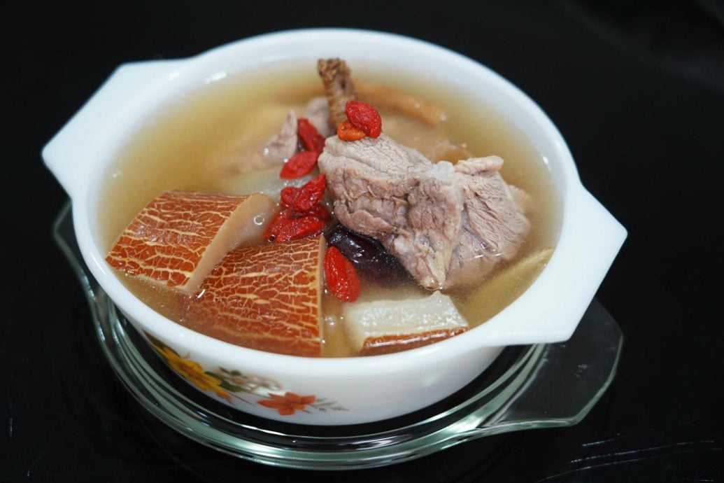 妈妈是个烹饪高手,基本上每一餐饭,她都会煲汤;但是当我长大了以后,就不太想喝妈妈煲的汤了,那时刚出来社会工作,年轻嘛,因为爱美,总觉得喝汤就会令我变肥,总是找借口不去喝妈妈煲的汤。后来妈妈离开了,我就再也喝不到妈妈煲的汤。当然,现在轮到我煲汤给我的孩子喝,尤其这道妈妈教给我的老黄瓜排骨汤,很特别的是,妈妈在煲这个汤的时候,都少不了玉竹,汤就会特别鲜甜,基本上就不用其他的调味料了。而我的儿子也最喜欢喝汤,就算只有一碗汤配白饭,他也吃得津津有味,吃得很开心。我想,喝一碗妈妈煲的汤,就是一件特别幸福的事。
