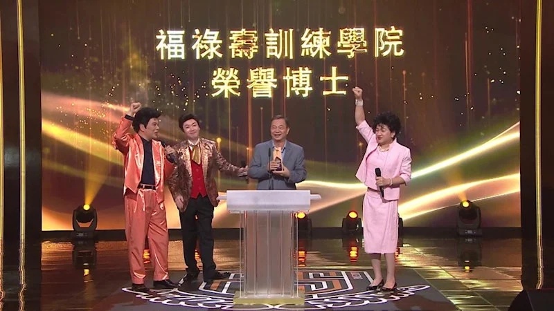廖伟雄领奖时忍不住泪洒人前,但仍不忘发挥搞笑本色:“我拿到这个荣誉博士,是全球最伟大的唯一一间福禄寿训练学院,一个至高荣誉,其他地方没有的嘛 。多谢福禄寿训练学院!多谢TVB!”