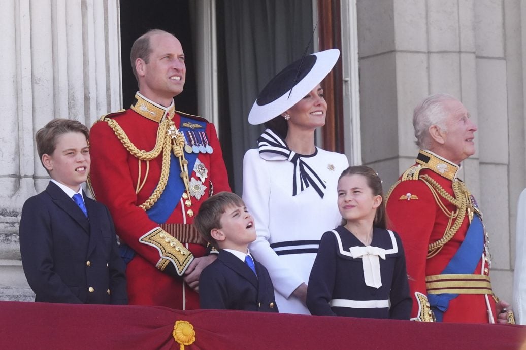 夏洛特公主穿着带有水手领的海军蓝洋装,以及与母亲搭配的白色鞋子,乔治王子和路易小王子穿着海军蓝双排扣西装,搭白色衬衫和亮蓝色领带,3人的服装与王储威廉的红色军装完美搭配。