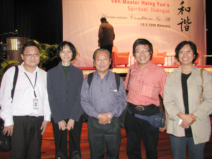 2008年6月10日我与父亲周国强受到《普门杂志》主编沈明信的友好书信邀请,出席一场由台湾佛光山开山宗长星云大师亲临主讲的座谈会。这场由佛光文化主办,星洲日报协办以讲述“和谐”为主题的盛会在吉隆坡KLCC三楼讲堂隆重举行。