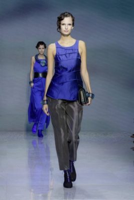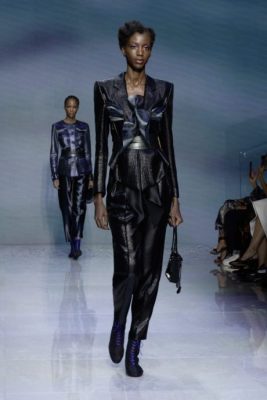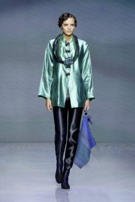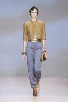 Giorgio Armani的设计本质始终如一,却如穿透棱镜般折射无穷变幻。 垂感夹克、利落大衣、柔和裤装的轮廓迎合身姿与体态。同时,低跟鞋履释放自在步调,宽大手袋融入独特节奏,焕然一新的造型,却依然故我。一如〈孔雀东南飞〉,婀娜多姿的轻盈美态,淡淡展示个中的优、和、美。