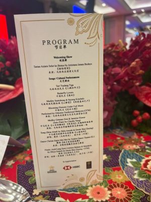 此外,午宴上也安排各族舞蹈及表演,以此展现我国的多元文化,包括久贾舞(Joget) 、杂宾舞(Zapin)、扇子舞、婆罗多(Bharatanatyam)及展现沙巴和砂拉越各民族的舞蹈。
