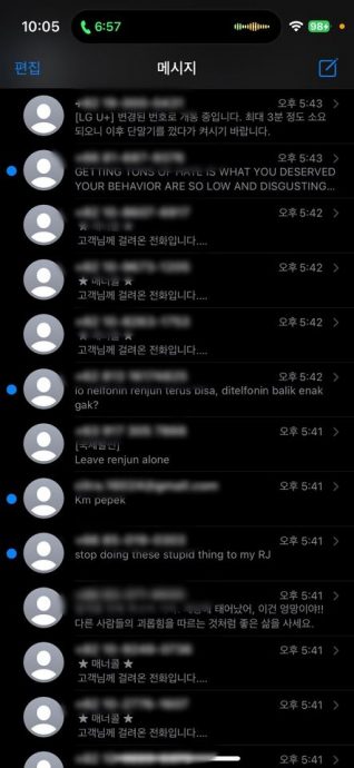 (首尔21日讯)韩团NCT成员仁俊长年来一直饱受私生饭(疯狂粉丝)的困扰,前阵子甚至因焦虑症状而暂停活动。20日,他在付费平台Bubble(泡泡)上公开了一串电话号码,并说“别再打电话了”,引发轩然大波。然而,这个号码并非私生饭的,而是无意间拨打的一般人,导致该人饱受粉丝电话和简讯的骚扰。