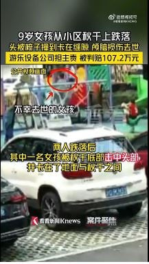9岁女童荡秋千跌落丧命 爸爸聊天不顾女儿 要负40%责任