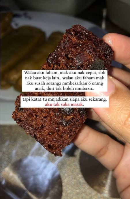 “但这些话造就了现在的我。我不喜欢做饭。当我为自己的小家庭煮乐不好吃的菜时,我就会难过得哭泣。因为我会为浪费丈夫的钱而感到内疚。