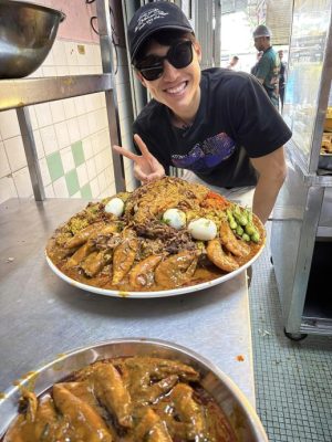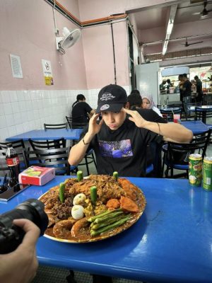 (槟城27日讯)一名来自新加坡的美食博主,专程来到槟城享用300令吉的扁担饭!