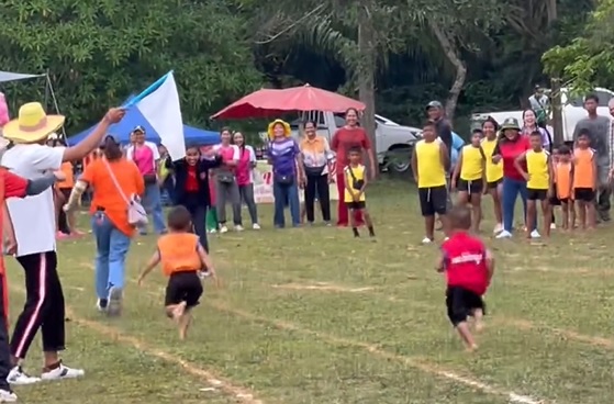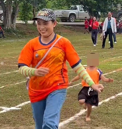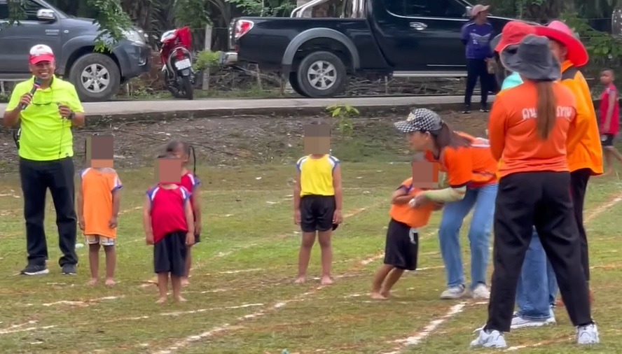 根据脸书用户@อบต. วังอ่าง分享的视频中可见,这场比赛参赛者只有2名小男孩,其中一位身穿橘色衣的5岁男孩表现得很抗拒,在起跑线上泪流满脸,紧紧抱住身旁的妈妈。