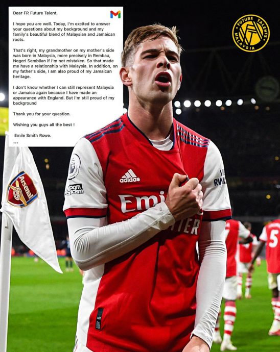 根据“@frfuturetalents”在社交媒体X上的帖文,如今效力于英超顶级俱乐部阿申纳的英格兰足球员埃米尔史密斯罗威,竟然拥有部分马来西亚血统。