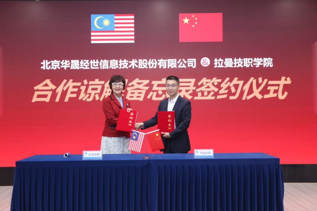 “在中国教育部职业教育发展中心主任林宇的见证下,我们也与北京华晟经世信息技术股份有限公司(简称“华晟经世”),签署了合作谅解备忘录。”