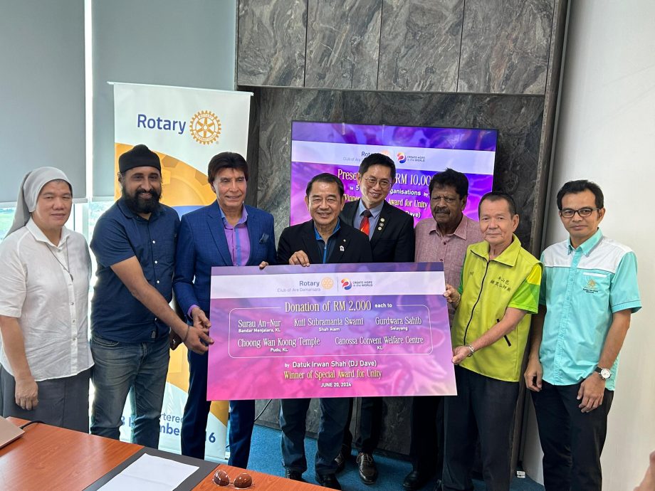 也因为这样,阿拉白沙罗扶轮社于去年10月17日颁发“特别团结奖”给DJ戴夫颁发,表彰他大力促进全民团结;本月20日,DJ戴夫将所获得奖金,即1万令吉全数捐赠给5个宗教团体。