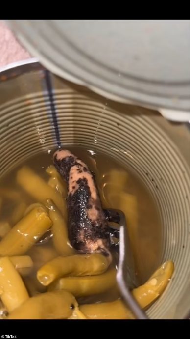 (华盛顿30日综合电)太恶心了!一名女子在食用绿豆角罐头时,惊讶地发现罐头深处竟然有一根疑似黑色腐烂的“手指”,让她感到恶心至反胃作呕!