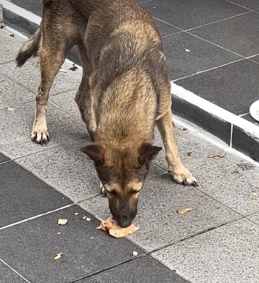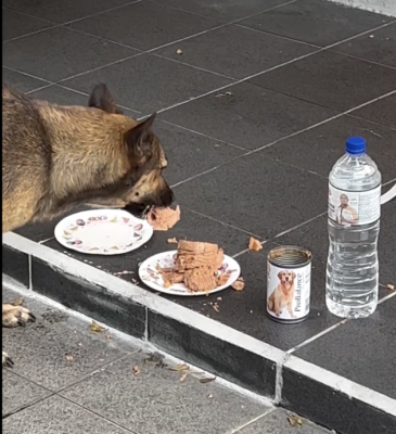 男子随即到便利商店购买狗粮罐头和一瓶饮用水,他所上传的视频显示,这只浪浪终于得以饱餐一顿,补充体力。