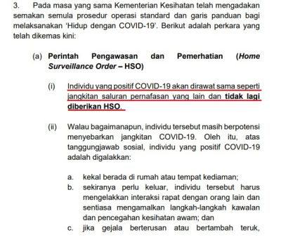 祖基菲里昨日(4日)的国会书面回复伊党瓜拉冷岳区国会议员阿末尤努斯的提问时表示,卫生部已经重新检讨冠病的标准操作程序(SOP)和指南,实施“与冠病共存”(Hidup dengan COVID-19)。