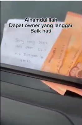 社交媒体流传一段29秒视频显示,拍摄者相信是马赛地的车主,他发现一张夹在雨刷的道歉信和30令吉现金。