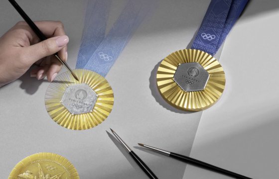 奖牌上的埃菲尔铁塔金属以六角形呈现,恰好与法国国土的形状相契合,但同时也与Chaumet品牌经典系列“Bee My Love”的六角形蜂巢元素相似,反映整个国家共同努力呈献一场具非凡意义的奥运会和残奥会。而且,在抹掉了“埃菲尔铁塔棕色”的涂料后,金属露出了原本的颜色,再印刻上2024年巴黎奥运会的标志,与金、银、铜质奖牌完美融合。