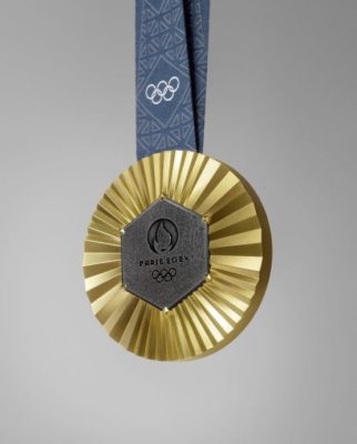 今届奥运在统一赛会标志、吉祥物、视觉标识和共享火炬设计后,巴黎2024奥运会和残奥会在奖牌的其中一面,也采用了相同设计,镶嵌了具巴黎奥运标志的六角形埃菲尔铁塔金属。