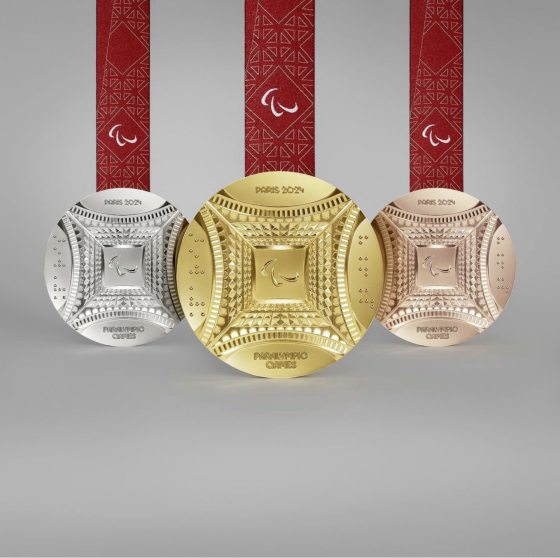残奥会奖牌的另一面则出自巴黎2024奥组委和Chaumet的创意,以仰视角度描绘的艾菲尔铁塔图案,能够让获奖者从不同角度欣赏铁塔。铁塔底部环绕着“Paris”和“2024”字样,加上全球通用的盲文,即象征包容和无障碍,也向来自法国的盲文发明者Louis Braille致敬。