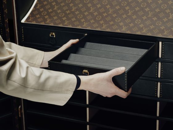 有趣的是,据《美丽佳人》披露,这款Louis Vuitton奥运奖牌专属行李箱的设计灵感,源自品牌最初为美发师设计的化妆箱“Malle Coiffeuse”。开放式顶部可用于展示奖牌,左右两边可展开的箱体装置了多个抽屉,可用作收纳奖牌,而且每个抽屉格中都以黑色哑光皮革铺上,就连把手也以黑色皮格点缀。整个奖牌行李箱总共可以收纳468枚奖牌。