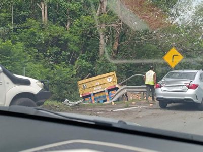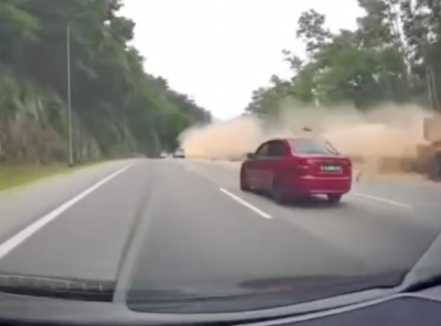 视频|罗里疑失控撞草丛!砖块飞洒加叻大道