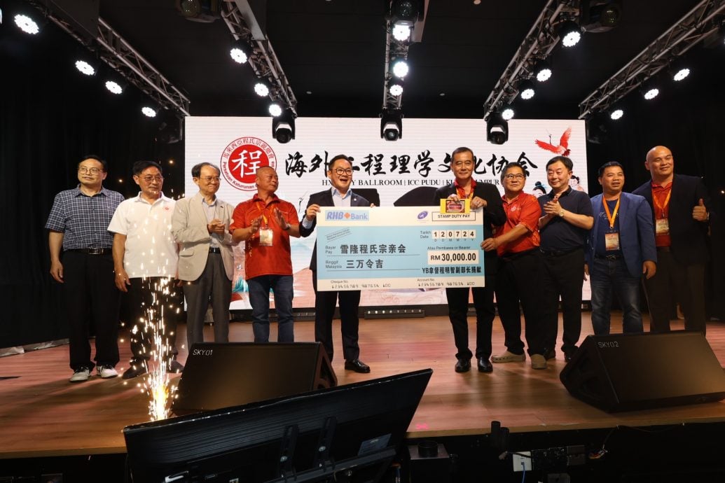 仪式上,程明智移交3万令吉捐献予大会,由程天送和雪隆程氏宗亲会主席程克华接领。此外,举行成立海外二程理学文化协会,由工委会主席程晋强及程克华移交牌匾,由程天送接领,邀请程明智见证。程道兴则赞助50本二程理学思想新解书给这次交流会活动。
