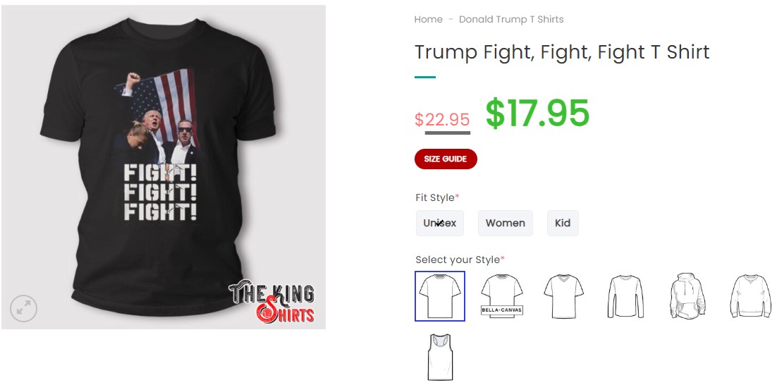 其它美国电商也陆续推出相关的T恤产品。其中TheKingShirts网站售价由17.95美元(约84令吉)。