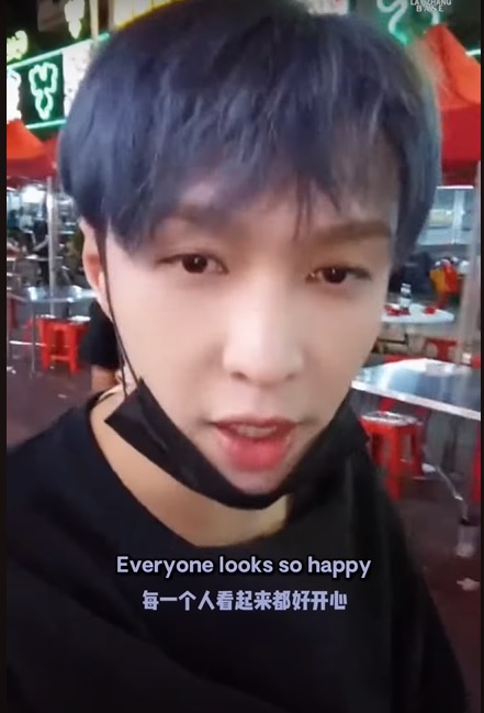 这名韩国男团EXO的前团员边逛边表达感想说:“每一个人看起来都好开心!”