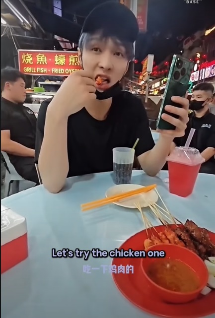 从这段上载到YouTube的视频博客,可见张艺兴乘坐专车抵达夜市,而进入夜市第一句话便是“沙爹(satay)在哪里?”,显得迫不及待要吃到沙爹。