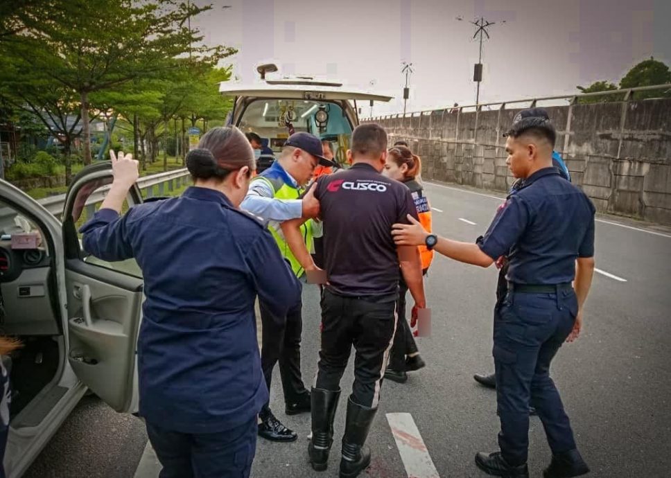 (新山14日讯)一名交通警察在车祸现场维持秩序时,突被一名怀疑醉酒驾驶的司机撞飞,导致左臀骨折、脸部和下巴受伤且割伤右手,肇祸司机则左手受伤。