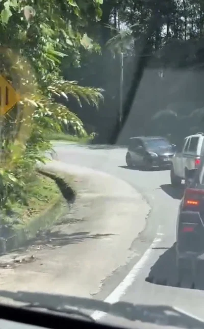 此事相信是在沙巴昆达山的山区路段发生,不过上传视频者并未注明事发原因。